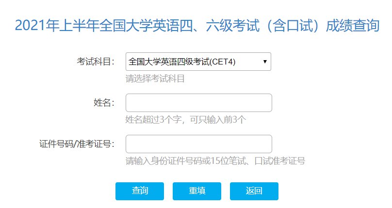 发布内容:2021年上半年全国大学英语四、六级考试(含口语)成绩