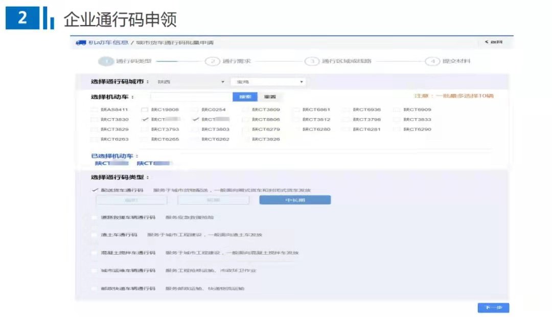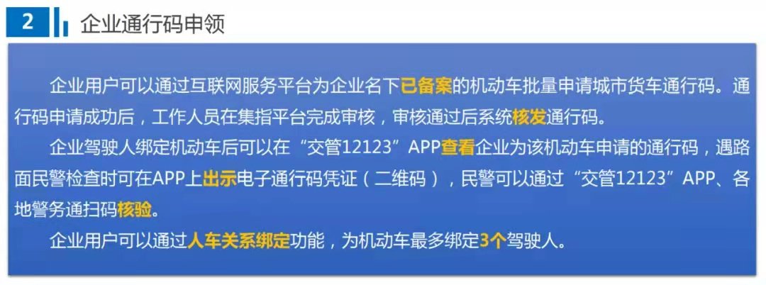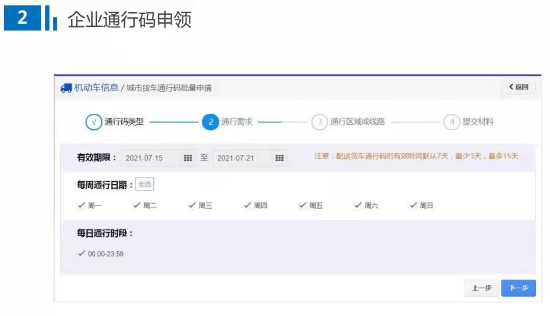 在“交管12123”APP上暂时只支持申领3天以内的城区轻型货车临时通行码,后续交警部门将根据试点应用情况逐步放开办理其他类型货车和更长时间的通行码功能,以促进货车通行码便利、规范、公开、公正发放,进一步提升“互联网+交管”政务服务水平,使简政便民措施精准落地,更好便利群众、企业办事,更好服务优化营商环境。