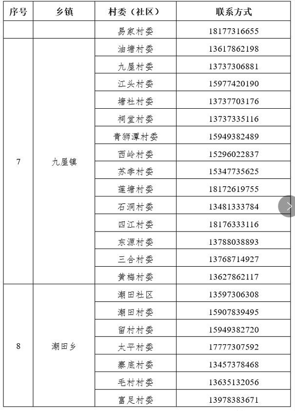 灵川县全县各乡镇村委(社区)报备联系电话