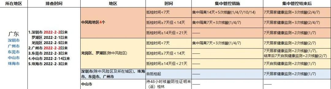 广东省深圳市、广州市、东莞市、中山市、珠海市来桂返桂人员健康管理措施