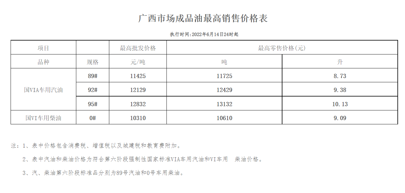 这次成品油价格调整后,我区国VIA标准89号汽油从8.44元/升调整到8.73元/升,每升上调0.29元;