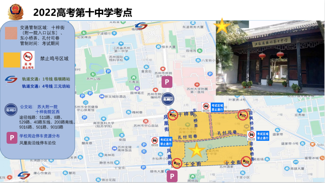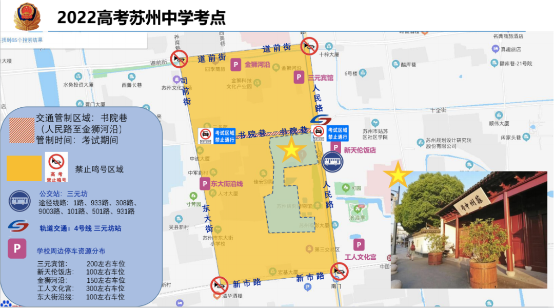 姑苏区四个考点位于古城区核心地段,靠近人民路、干将路、临顿路等主干道。