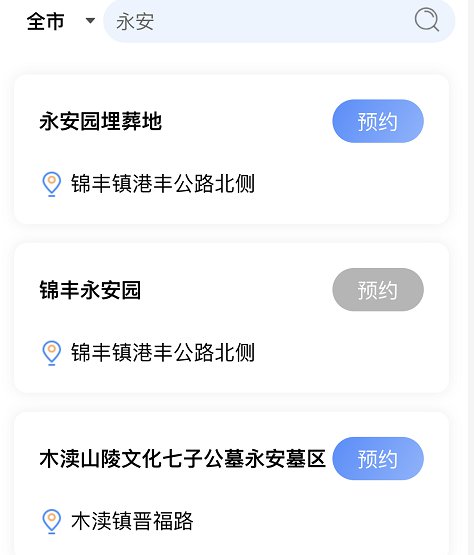 第五步:然后选择永安公墓,点击“预约”(如下图所示);