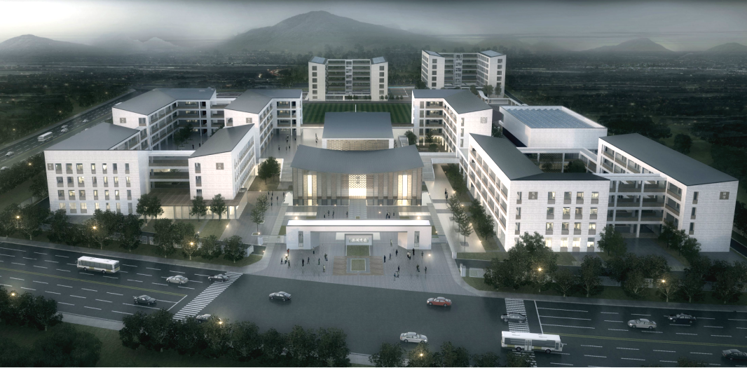 项目设计方案遵从传统“礼乐”思想,以中轴式布局理念,灰墙黑瓦的中式坡顶建筑形式,构建新时代背景下的“滨湖书院”
