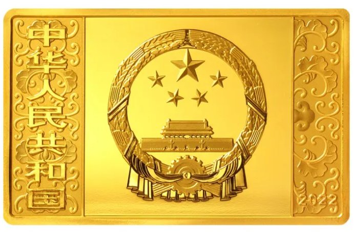 该套金银纪念币正面图案均为中华人民共和国国徽,衬以中国传统吉祥纹饰,并刊国名、年号。