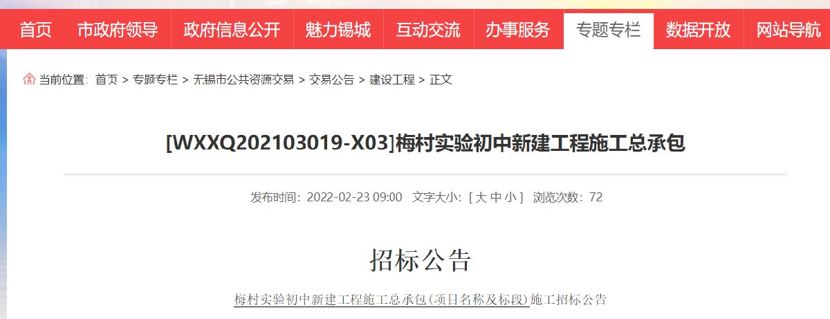 [WXXQ202103019-X03]梅村实验初中新建工程施工总承包
