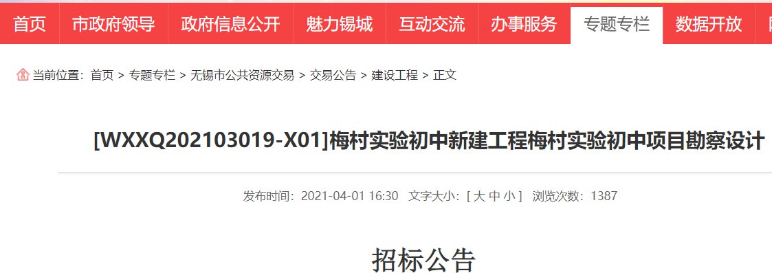 2021年4月梅村实验初中新建工程梅村实验初中项目勘察设计