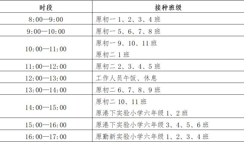 (因港下中学暑期改扩建场地限制,接种地点借用东湖塘中学场地)