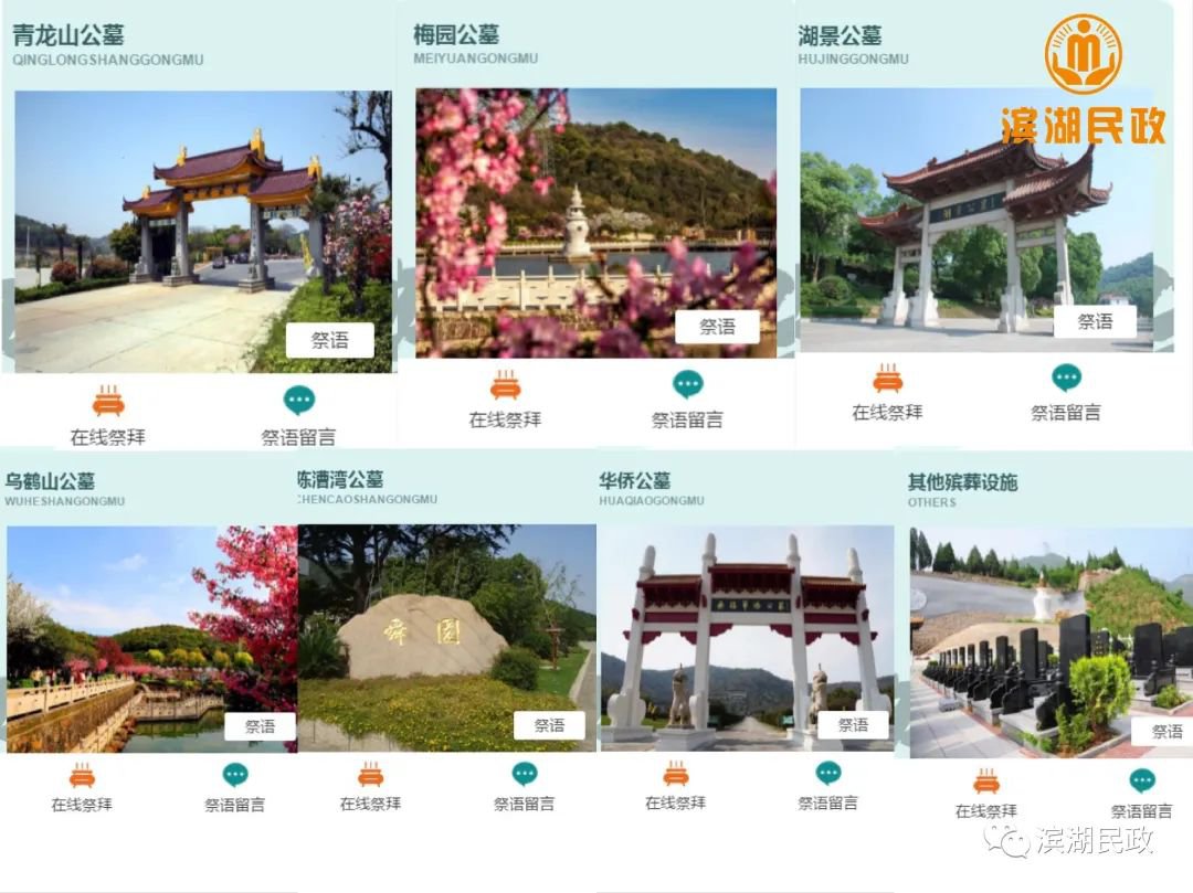 据滨湖民政官方微信,在这个特殊的日子里,为满足广大市民祭奠逝者、感恩先人的愿望,滨湖区推出“网上祭扫”小程序,利用线上点灯、寄语、献花等形式,提供网上祭扫服务。即使您无法和往常一样亲临园区,也可以用您的指尖追忆往昔,遥寄哀思。