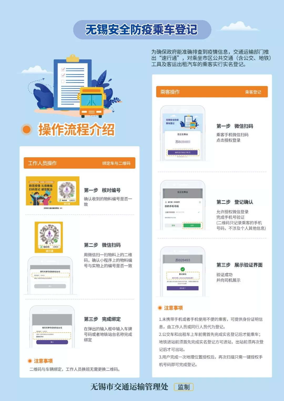 答:乘客使用微信扫描无锡出行防疫“速行通”二维码,确认当前乘坐的车牌号或地铁站名后,提交手机号码等信息后即完成实名登记。