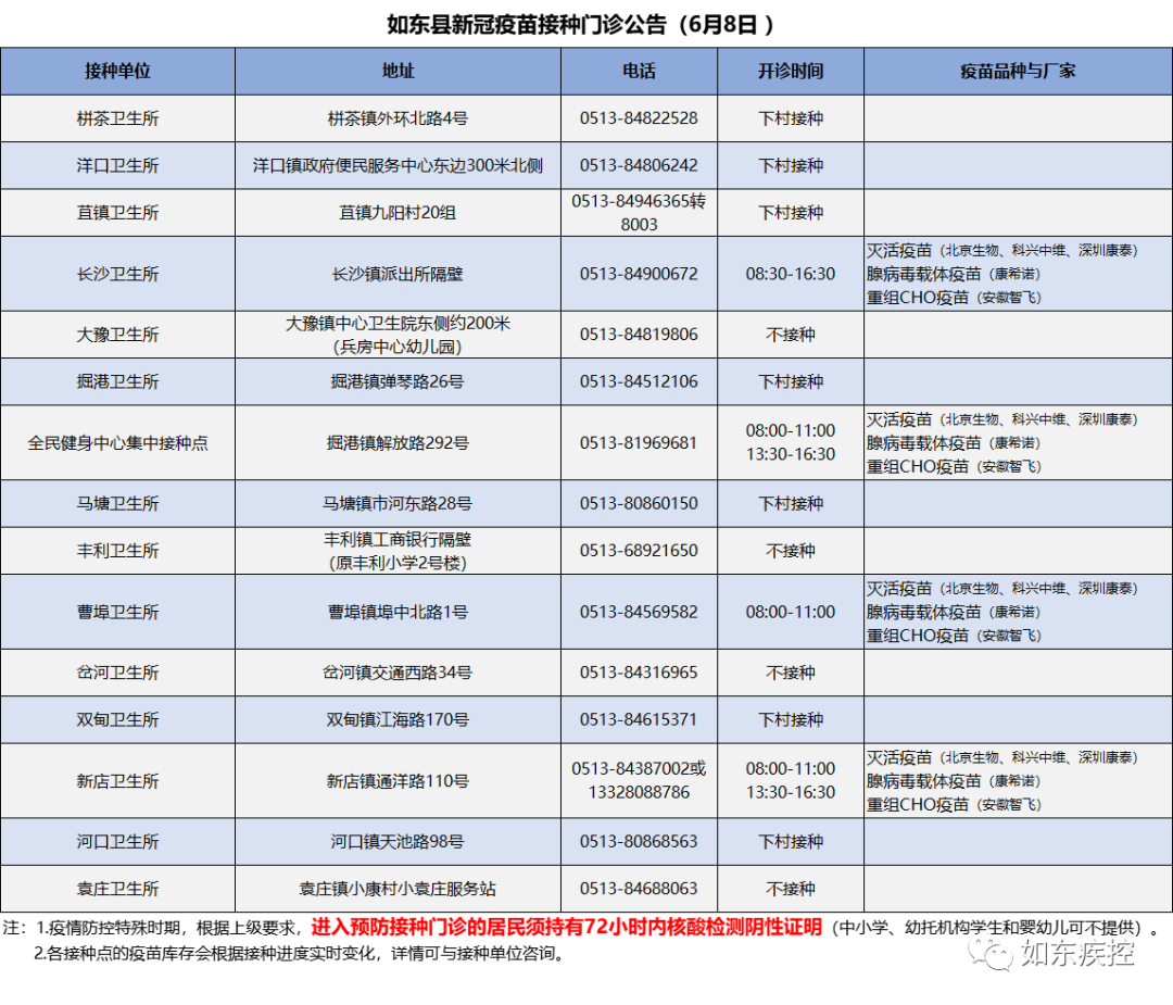 6月8日如东县新冠疫苗到苗通知 如东县新冠疫苗接种