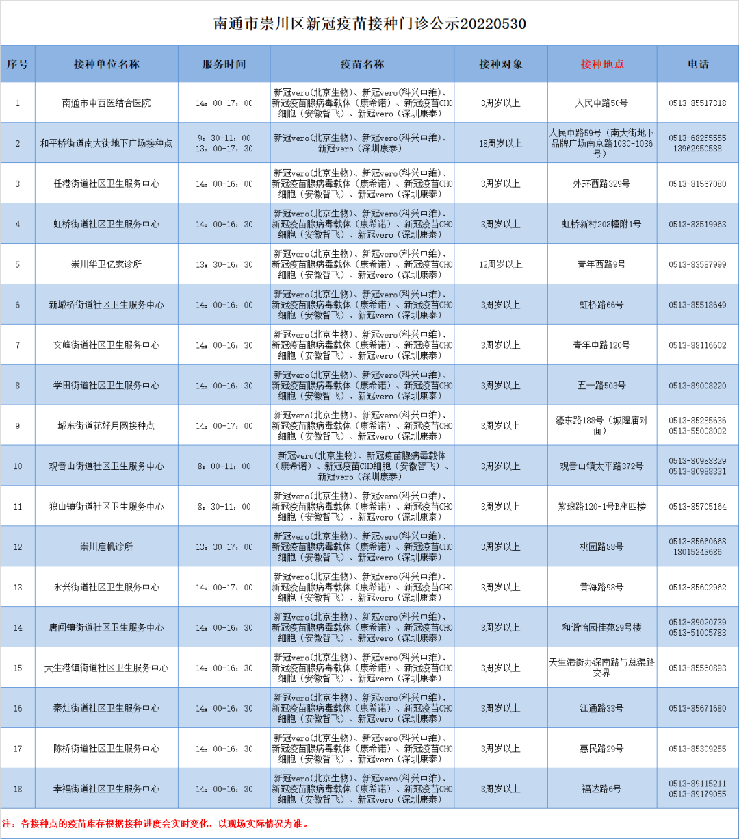8、各接种点的疫苗库存根据接种进度会实时变化,以现场实际情况为准。详情可与接种单位在工作时间咨询联系。
