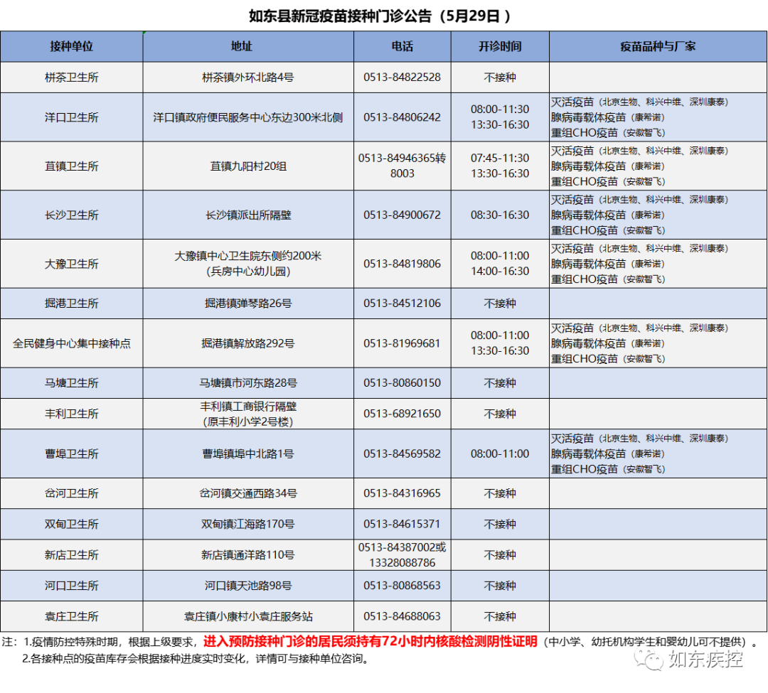 5月29日如东县新冠疫苗到苗通知 如东县新冠疫苗怎么预约
