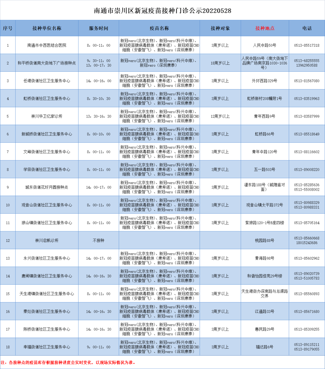 5月28日崇川区新冠疫苗到苗通知 崇川区新冠疫苗接种门诊公示