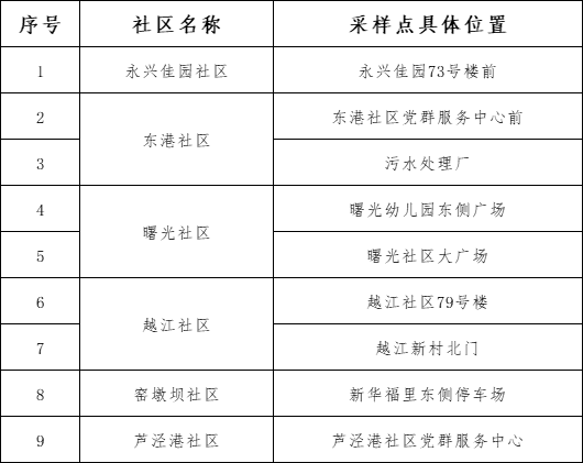 全区共安排2个专用采样点。