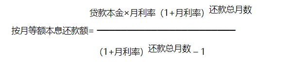 (一)等额本息还款法,即借款人每月按相等的金额偿还贷款本息,其中每月贷款利息按月初剩余贷款本金计算并逐月结清。