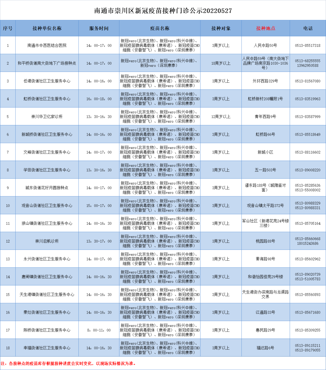8、各接种点的疫苗库存根据接种进度会实时变化,以现场实际情况为准。详情可与接种单位在工作时间咨询联系。