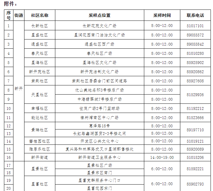 1.请广大居民朋友按照所在社区通知的指定时段,到各采样点开展核酸检测,做到应采尽采,确保不漏一户、不落一人。