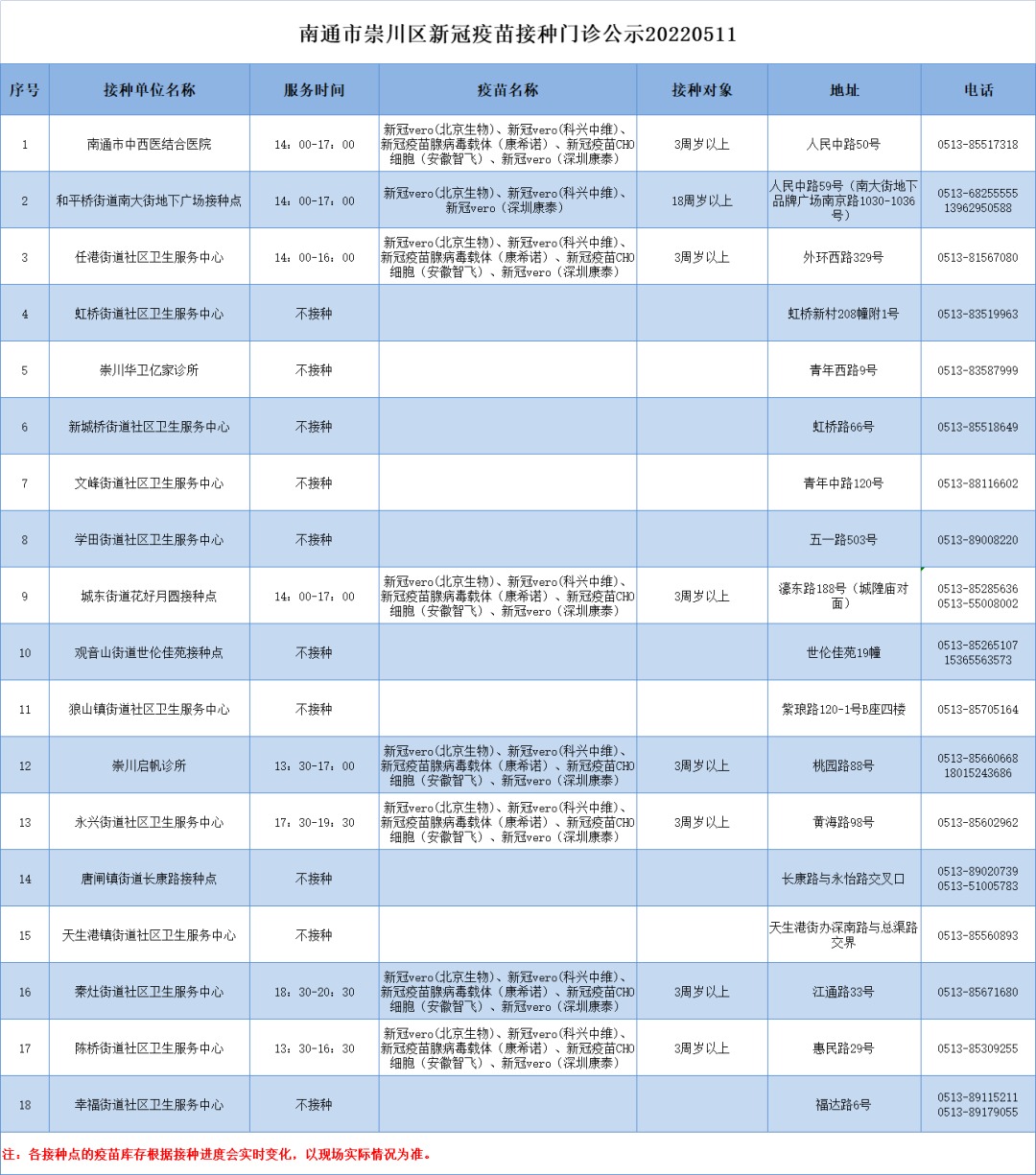8、各接种点的疫苗库存根据接种进度会实时变化,以现场实际情况为准。详情可与接种单位在工作时间咨询联系。