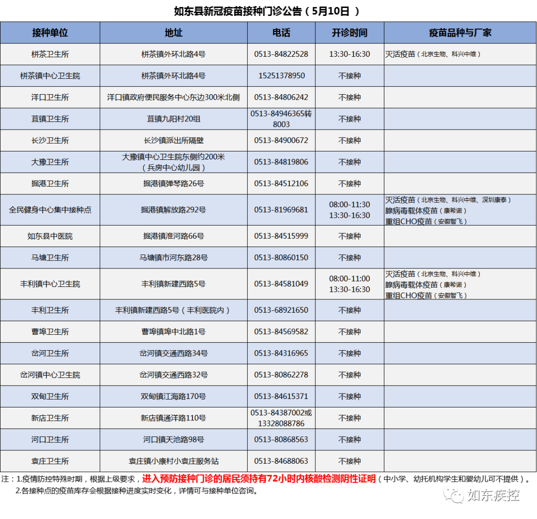 5月10日如东县新冠疫苗到苗通知(如东新冠疫苗咨询电话)