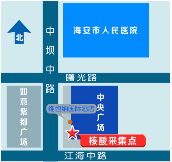 1.被赋黄码人员应立即向所在村居(社区)报备,并按规定到指定采样点(海安市中坝中路99号中央广场西南侧,见附图)进行核酸检测,相关费用自行承担。解码程序:“黄码”人员持核酸检测阴性证明向所在村居(社区)提交转码申请,经严格审核后规范转码。