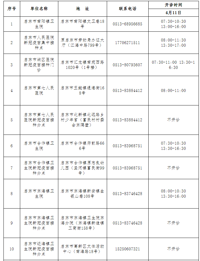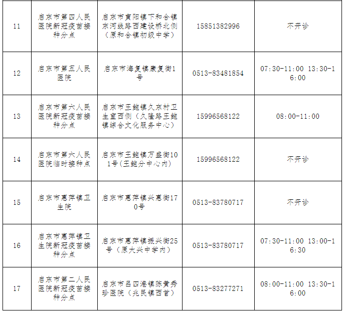 二、启东市新冠病毒疫苗接种单位一览表