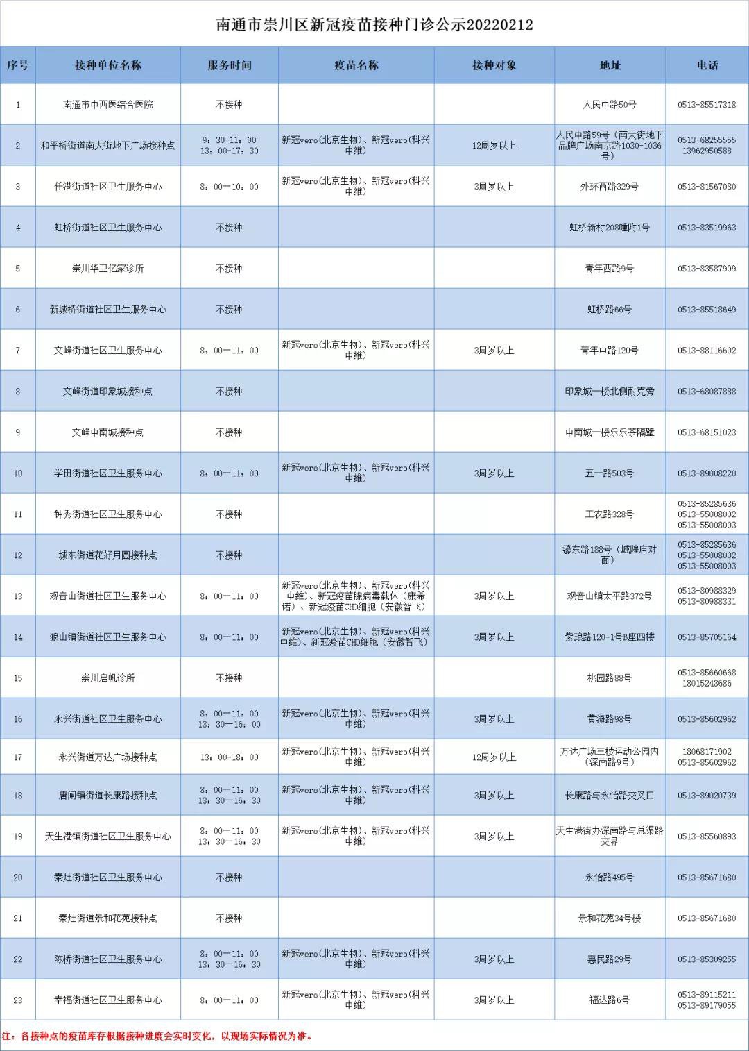 6、各接种点的疫苗库存根据接种进度会实时变化,以现场实际情况为准,详情可与接种单位在工作时间咨询联系。