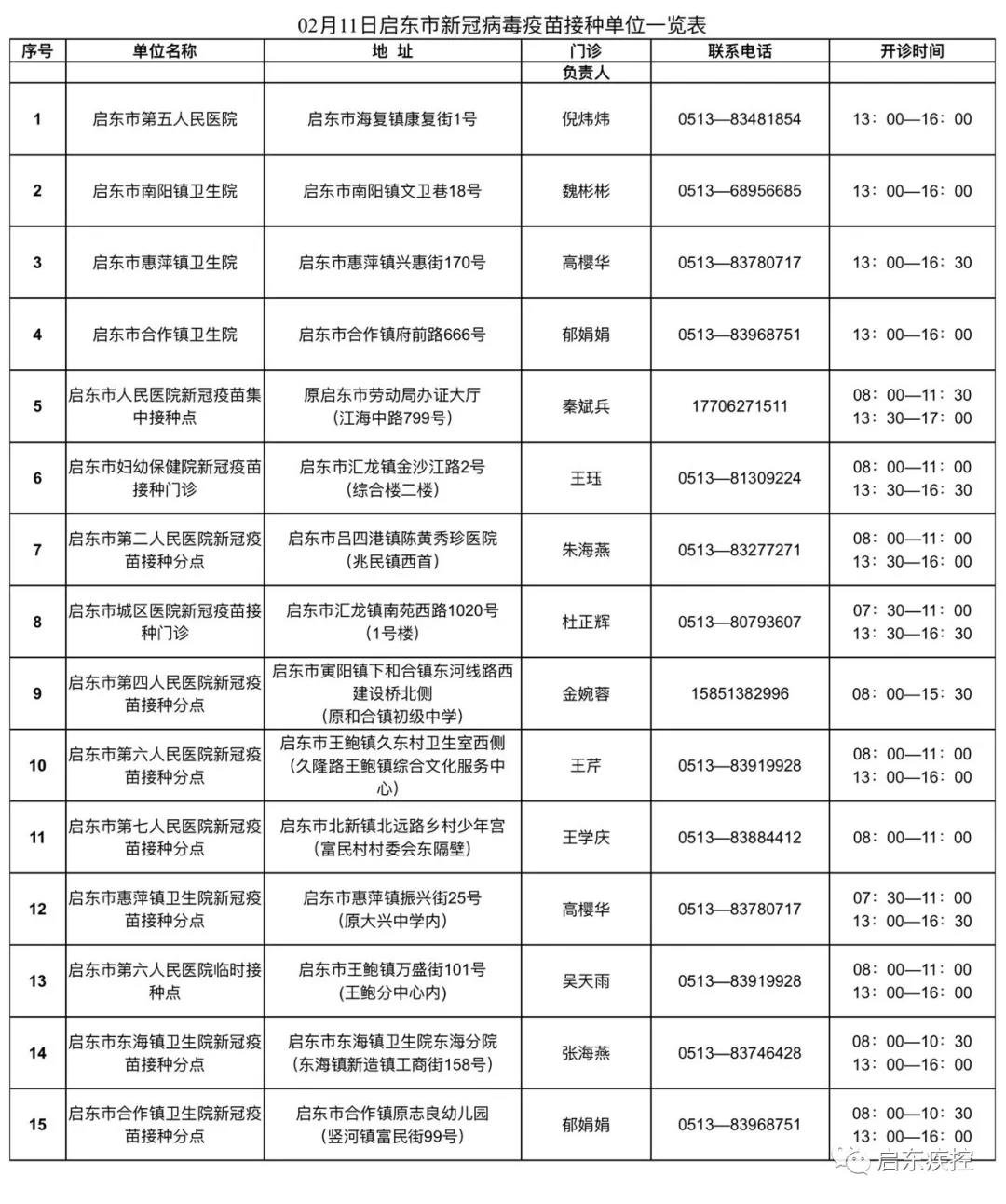 2月11日启东市新冠接种门诊可以接种的新冠疫苗有:北京生物新冠灭活疫苗、科兴中维新冠灭活疫苗、智飞CHO疫苗。现启东市已经正式启动新冠病毒疫苗加强免疫接种工作,接种服务时间如下: