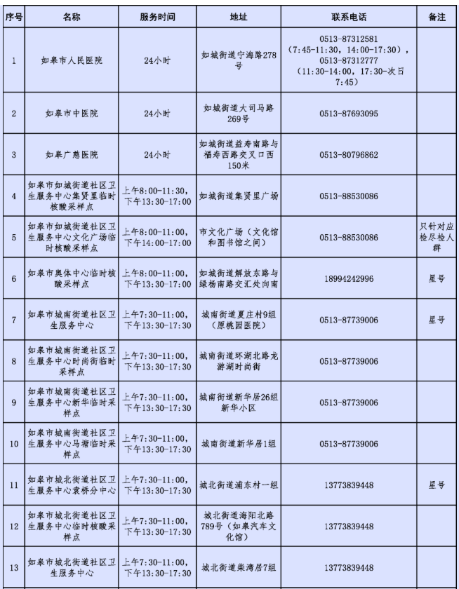 一、如皋市便民核酸检测点