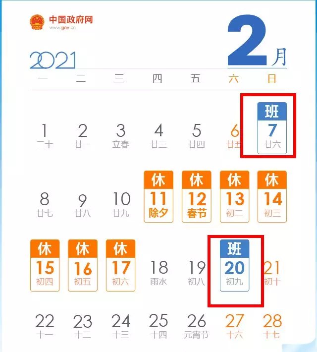 变化:本周上班的时间有变化,周日(2月7日)需上班,春节放假回来的周六(2月20日)也需要上班。