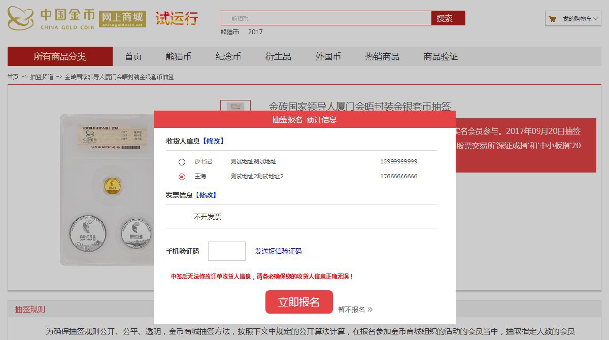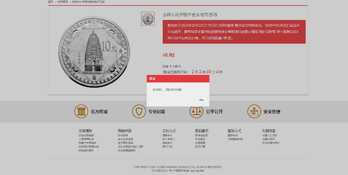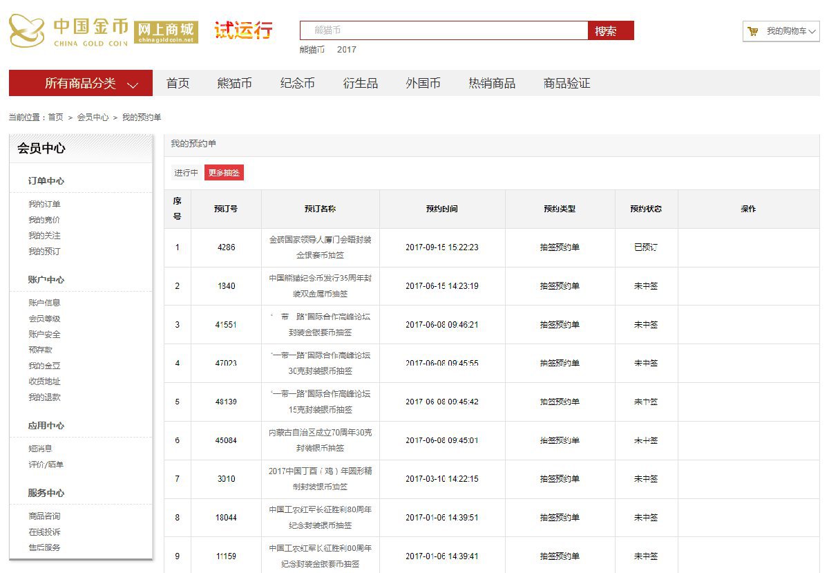 中国金币网上商城抽签预订流程