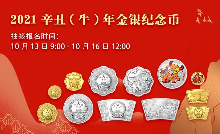 中国金币网上商城将以抽签形式预售2021中国辛丑(牛)年部分规格金银纪念币。