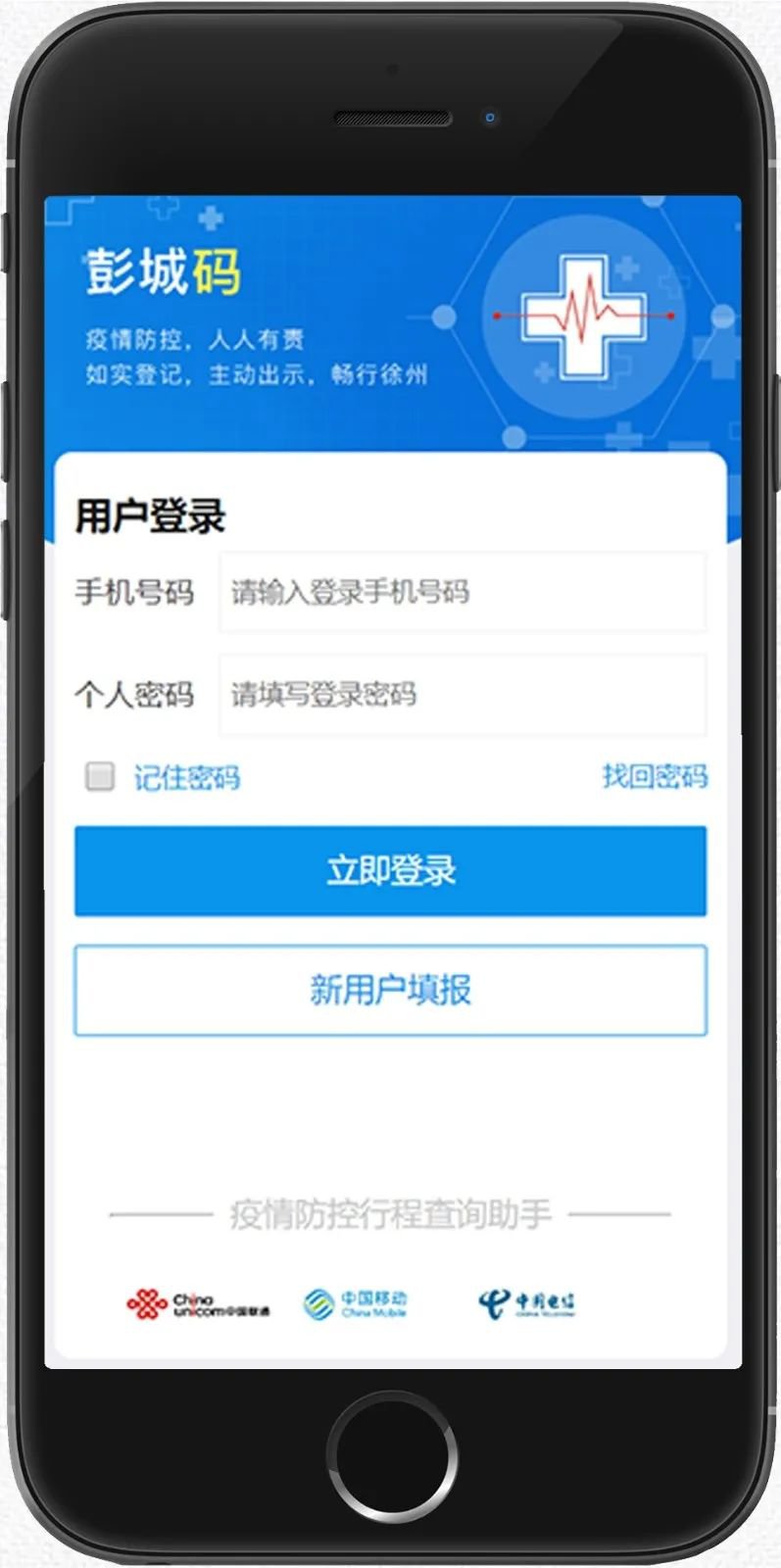 有记住密码、找回密码功能,下方有三大运营商最近行程查询入口