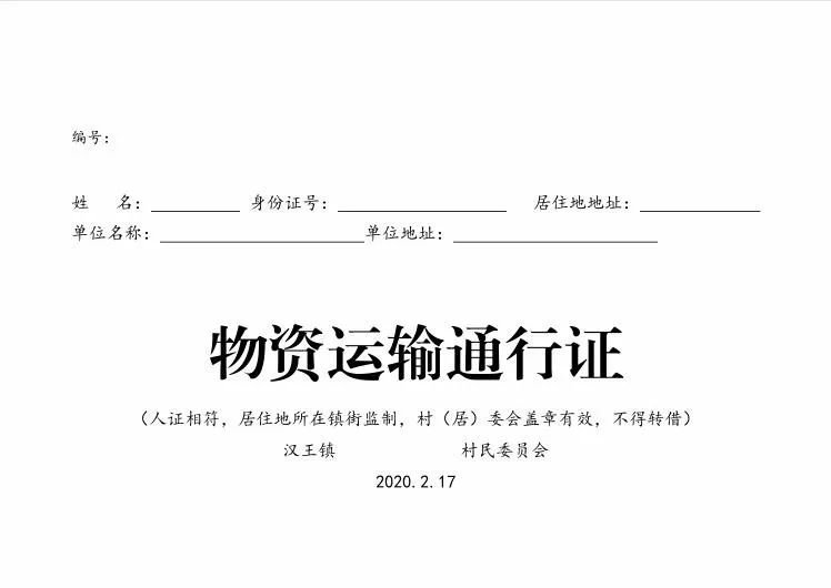 汉王镇人员车辆向外输出货物,向所在村委会申请,由村负责根据实际情况审核发放。