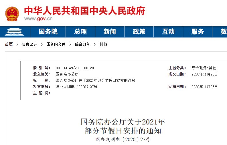 经国务院批准,现将2021年元旦、春节、清明节、劳动节、端午节、中秋节和国庆节放假调休日期的具体安排通知如下。