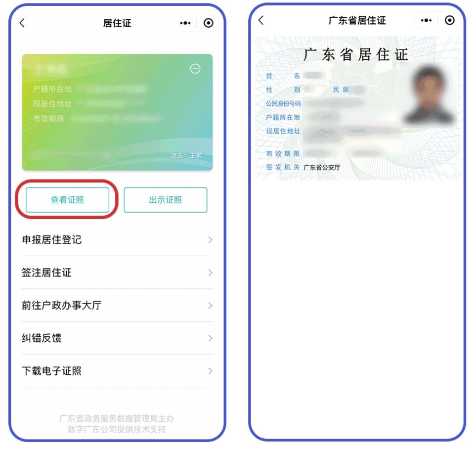 △以上为新申领电子居住证详情页面示意图,证照页面以实际页面呈现为准。