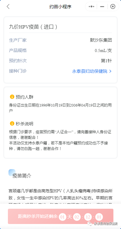 1、9价HPV疫苗和4价HPV疫苗秒杀流程: