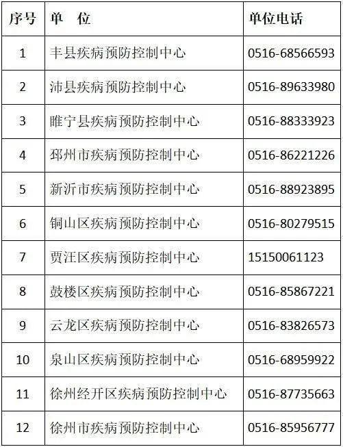 徐州市各县(市)、区疾病预防控制机构联系方式