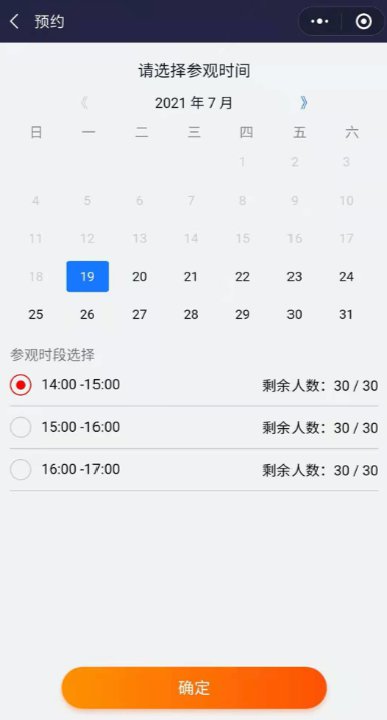 第四步:选择来馆参观的日期及参观时段,点击“确定”。