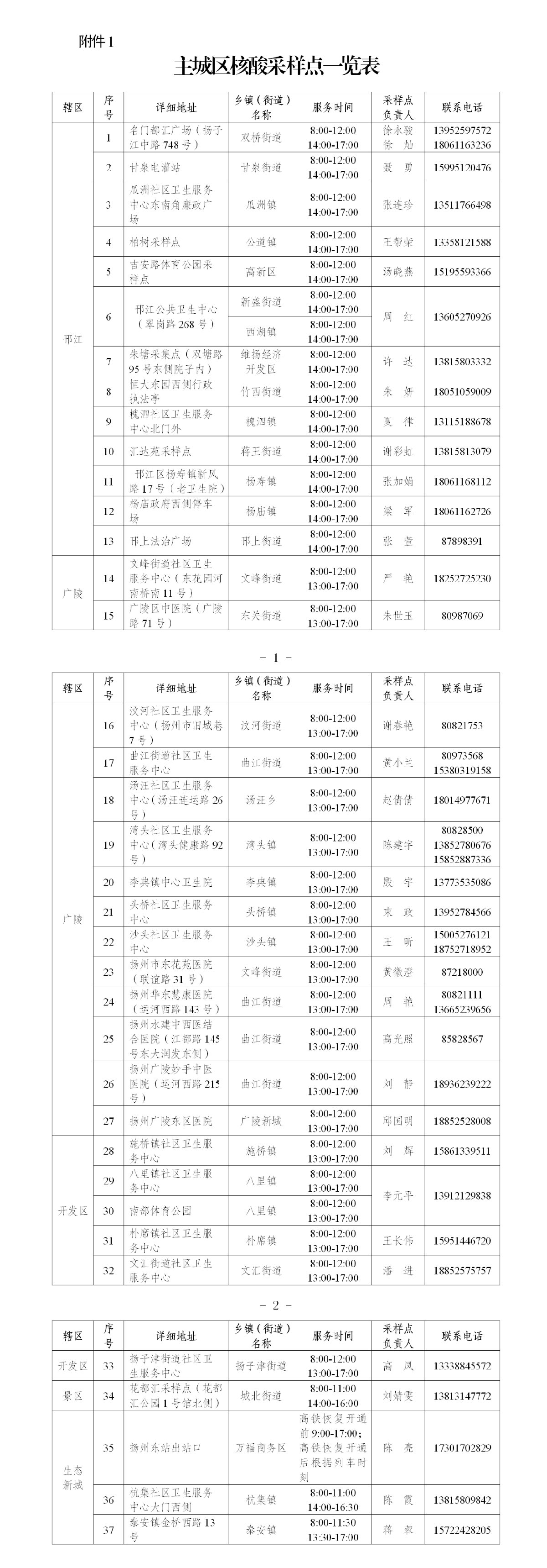 三、离扬车辆驾乘人员应主动了解目的地疫情防控政策,如目的地要求提供48小时内核酸检测阴性证明的,可到市内核酸采样点(见附件1)进行核酸检测。