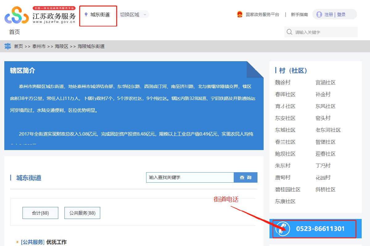 第二步:选择街道后,即可获取相应街道的咨询电话。