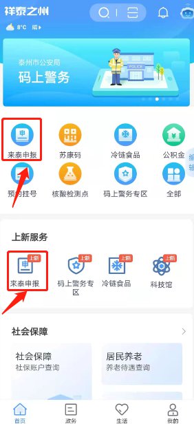 (四)点击App首页,进入来泰申报服务应用,填报个人返回泰州相关信息
