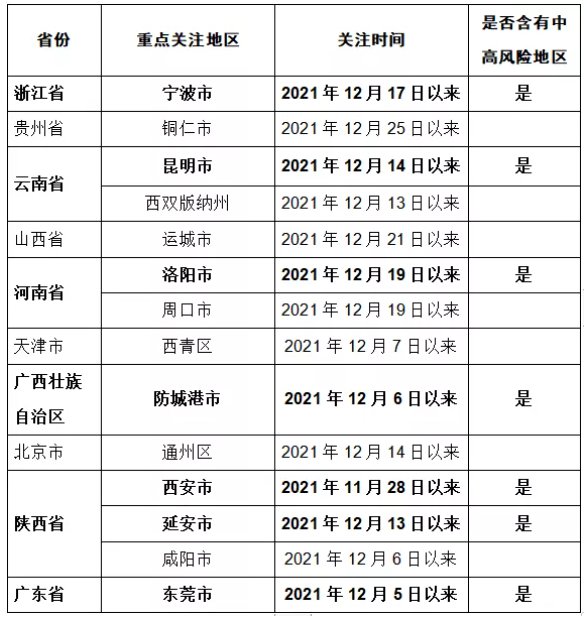 国内疫情相关关注地区