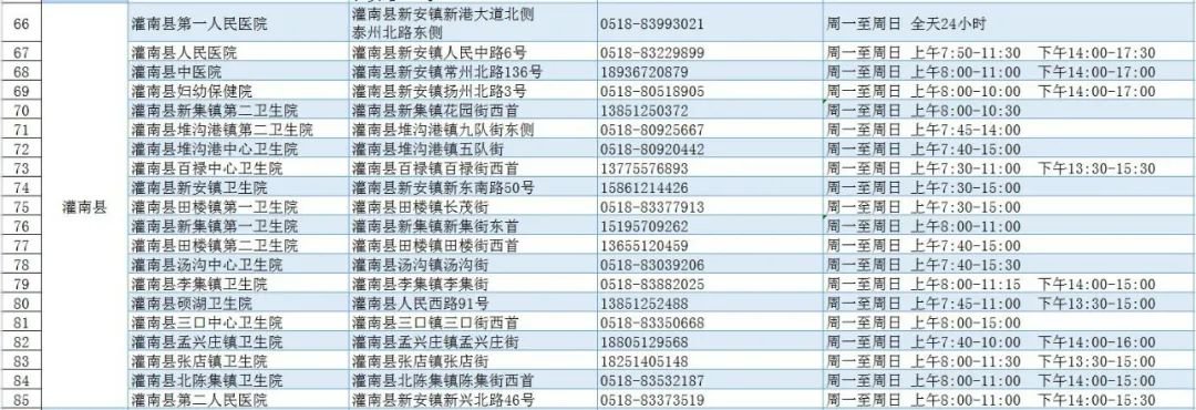 灌南县新冠肺炎核酸检测采样服务点名单