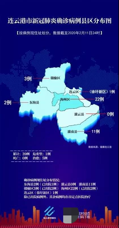 东海县2例(已出院1例),灌云县0例,灌南县11例,赣榆区3例(已出院2例),海州区22例(已出院2例),连云区(徐圩新区)1例。