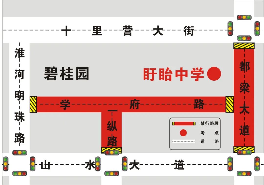 盱眙交警将在学府路与都梁大道交叉路口、学府路与一纵路交叉路口设置交通管理岗点,对盱中南大门前路段实行临时交通管制。