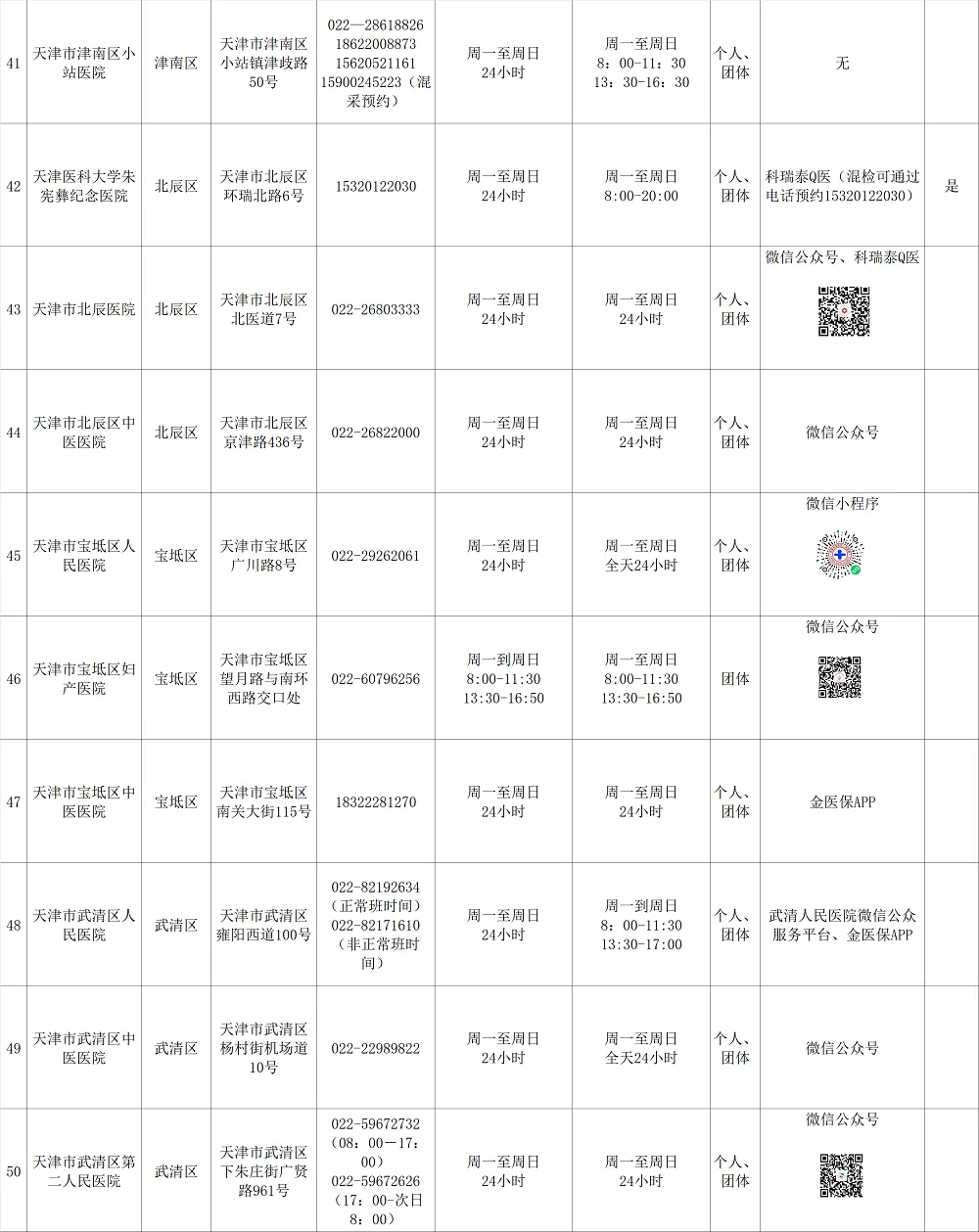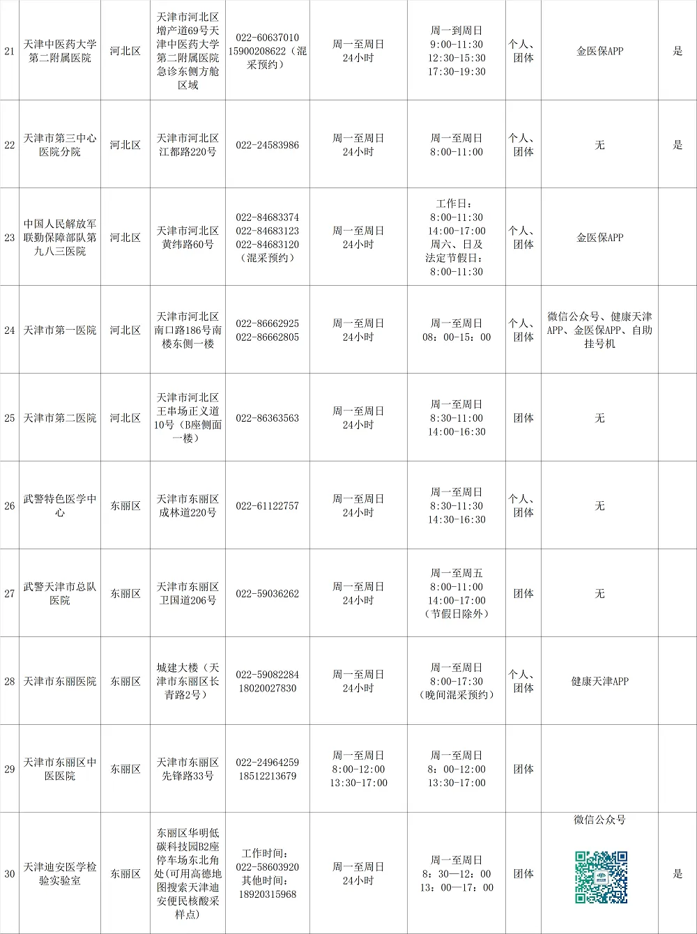 ✔天津核酸检测定点医院名单:
