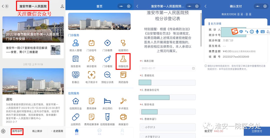 手机预约(推荐):微信公众号预约、缴费(流程如下图)。