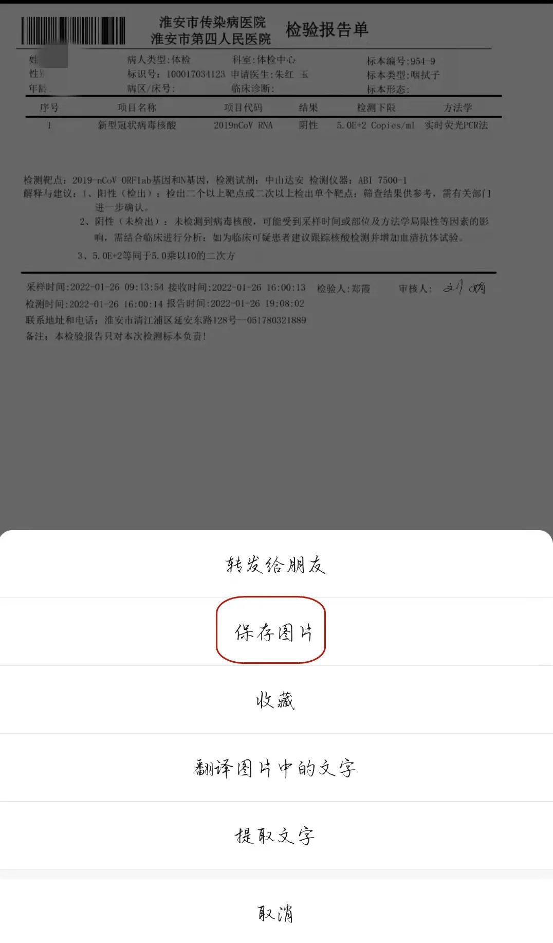 每日出具报告四次,以淮安四院微信小程序查询结果为准。