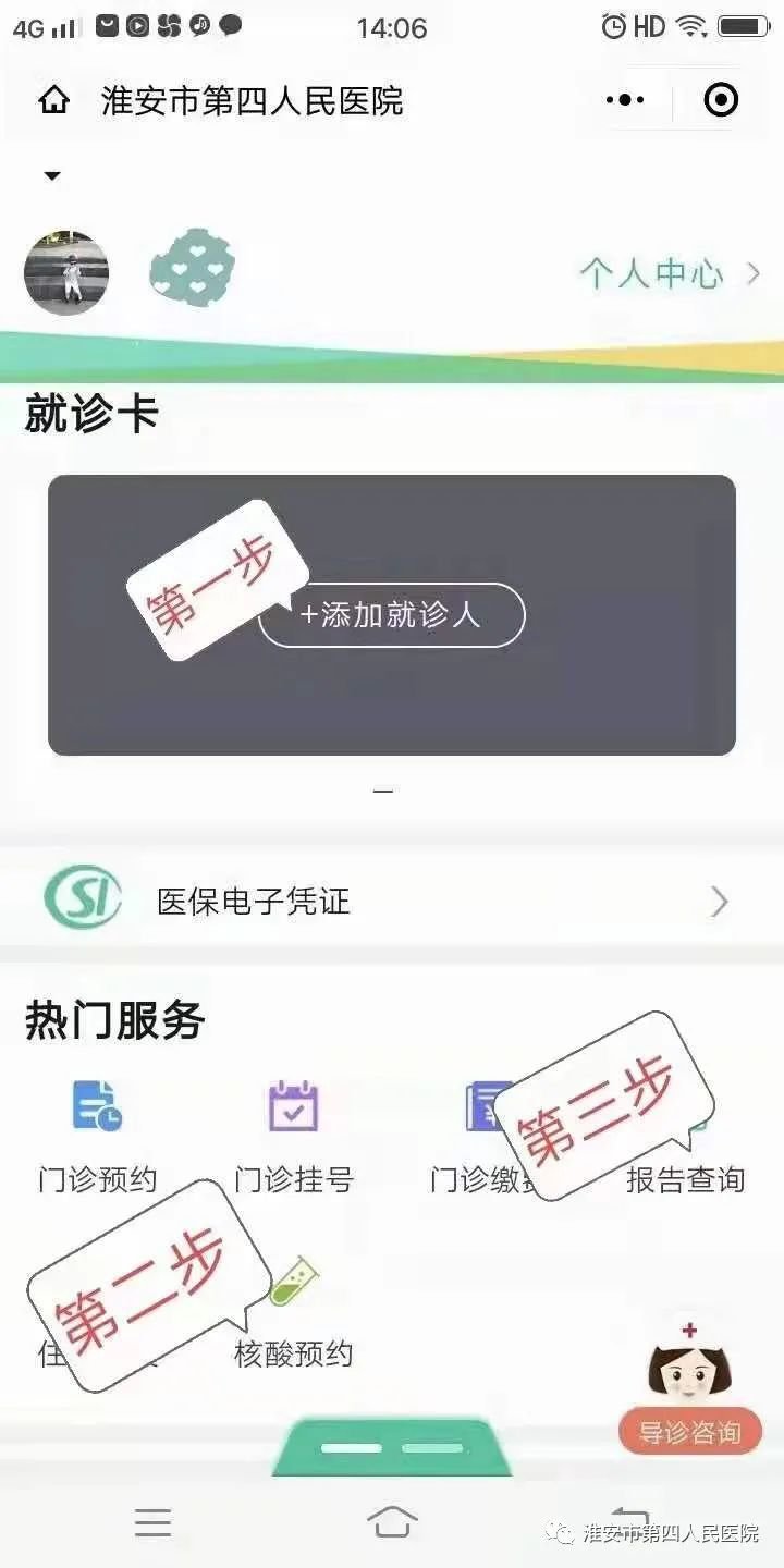 1.手机微信关注淮安市第四人民医院公众号,注册后进行挂号、缴费。最快捷、不排队!